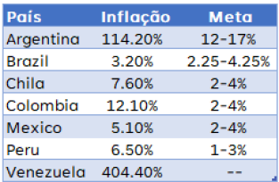 O Brasil esta atualmente com a inflação mais baixa da América Latina. O mercado está projetando alta inflação de 3.91 para os próximos 12 meses.